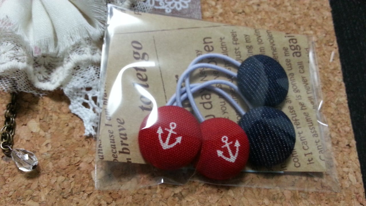 夏に向かってマリンカラーのヘアゴムを作りましたっ。腕につけても可愛いですよっ♪