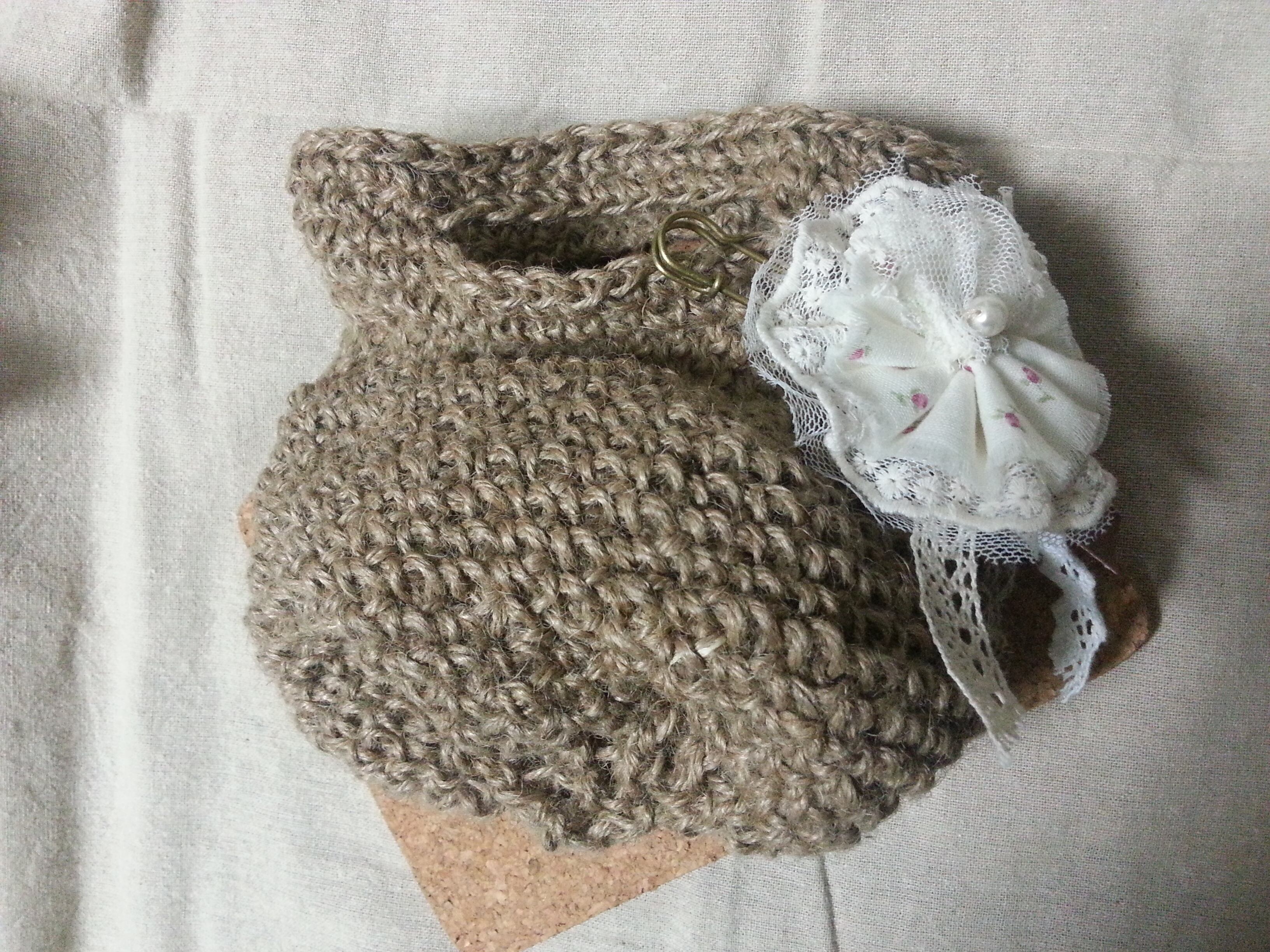 麻紐を手編みで かわいいプチバッグに仕上げました!